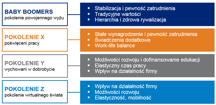 Podczas gdy najstarsi pracownicy wydają się być lojalnymi pracownikami, którzy są najbardziej przywiązani do firmy, to pokolenia Y (tzw. Milenialsi) i Z są mniej skłonne do poszukiwania pracodawcy na całe życie i chętniej oraz częściej zmieniają miejsce zatrudnienia. Różne badania oraz obserwacje ekspertów rynku pracy pokazują, że każde pokolenie pracowników ma inne priorytety zawodowe oraz oczekiwania względem zatrudniających firm. Biorąc pod uwagę, że potrzeby pracowników w innym wieku nierzadko zasadniczo się od siebie różnią, kluczowe staje się zbudowanie strategii budowania marki pracodawcy, której zróżnicowany przekaz będzie docierał
