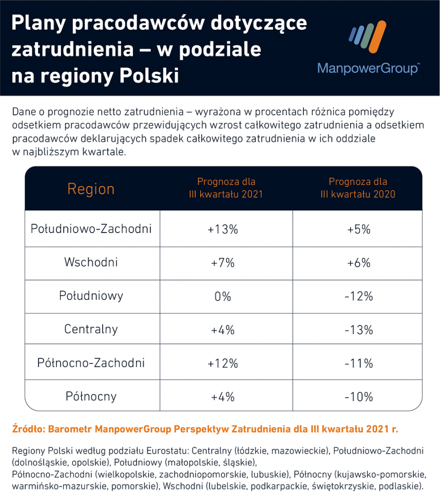 i o 14 punktów procentowych wyższy niż w trzecim kwartale 2020 rok, kiedy wpływ pandemii Covid-19 był najbardziej odczuwalny na rynku pracy. Prognoza jest najwyższa od początku zeszłego roku i wyższa