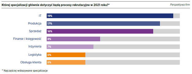 Największą otwartość na zatrudnienie nowych pracowników deklarują organizacje działające w branżach IT i telekomunikacyjnej, inżynieryjnej oraz w sektorze nowoczesnych usług dla biznesu (BSS). Na nadchodzące miesiące pracodawcy przewidują największe zapotrzebowanie na specjalistów IT, produkcji, sprzedaży oraz finansów i księgowości.