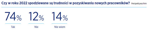 Najczęściej wskazywanym przez pracodawców powodem zaplanowanych rekrutacji jest rozwój biznesu i konieczność pozyskania nowych pracowników, często posiadających unikatowe kompetencje. Na drugim miejscu (33 proc. wskazań) pojawiła się jednak potrzeba znalezienia zastępstwa za pracowników, którzy zdecydują się odejść, a na trzecim (9 proc.) - zmiany strukturalne. Procesy rekrutacyjne przewidziane na 2022 rok często nie będą zatem powiązane ze zwiększeniem zatrudnienia, lecz naturalną rotacją pracowników oraz zmianą potrzeb kompetencyjnych organizacji.