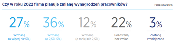 Należy oczekiwać, że w roku 2022 powszechny brak satysfakcji z wynagrodzenia, dla pracodawców będzie oznaczał większą presję płacową i potencjalne trudności w pogodzeniu ograniczeń budżetowych z oczekiwaniami pracowników. Otrzymanie podwyżki w perspektywie roku 2022 przewiduje 36 proc. specjalistów.