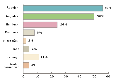 Z danych opublikowanych przez Urząd Miasta Warszawy wynika, że znajomość języka rosyjskiego deklaruje aż 56% badanych mieszkańców. Tymczasem znajomością języka angielskiego pochwaliło się "zaledwie" 50% respondentów. Na trzecim miejscu (24% odpowiedzi) uplasował się język niemiecki. 11% badanych osób przyznało się, że nie zna żadnego języka obcego.