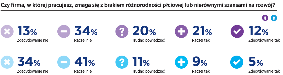 iż ich firma boryka się z brakiem różnorodności lub nierównymi szansami na awans.